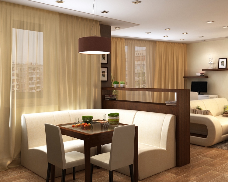 The choice of kitchen-living room 19 sq. m design photos can be viewed on the Internet, specialists designers have developed many options. If you decide to create a beautiful and unique interior, you need to take into account many nuances: the location of the kitchen set depending on the type of room, zoning and style of decoration, and even the choice of curtains for windows and accessories - all this is of great importance in the overall design.
