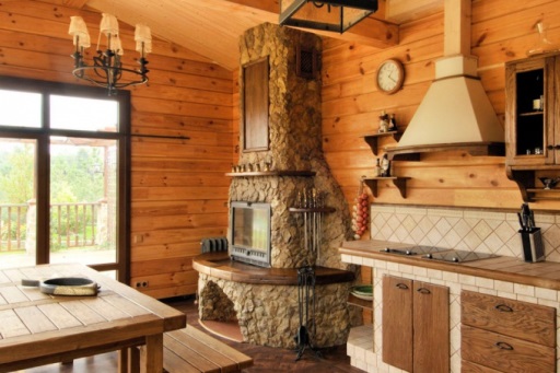 Rustic style, which uses roughly processed surfaces and natural textures of natural wood, is well suited for decorating a summer cottage interior.