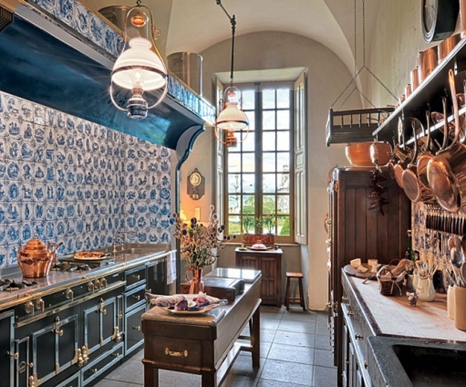 It is impossible to imagine such a kitchen without a Dutch oven, tiled in signature blue and white tones.