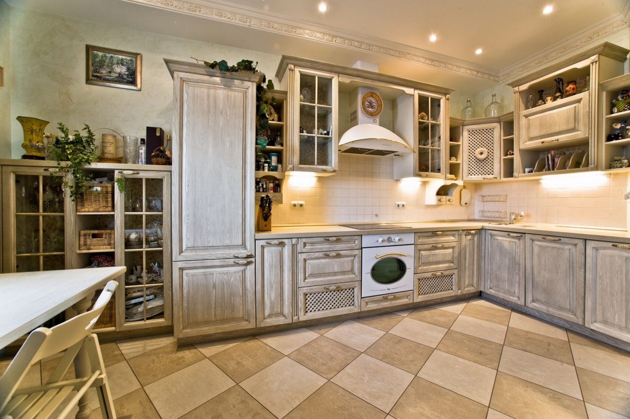 Despite the popularity of minimalistic and laconic interiors, vintage and retro come back into fashion. Kitchens in the style of shabby chic and Provence are popular, because they look unusually cozy in modern realities. A beautiful antique kitchen is suitable for large rooms, especially for country houses, but it can also look interesting in apartments.