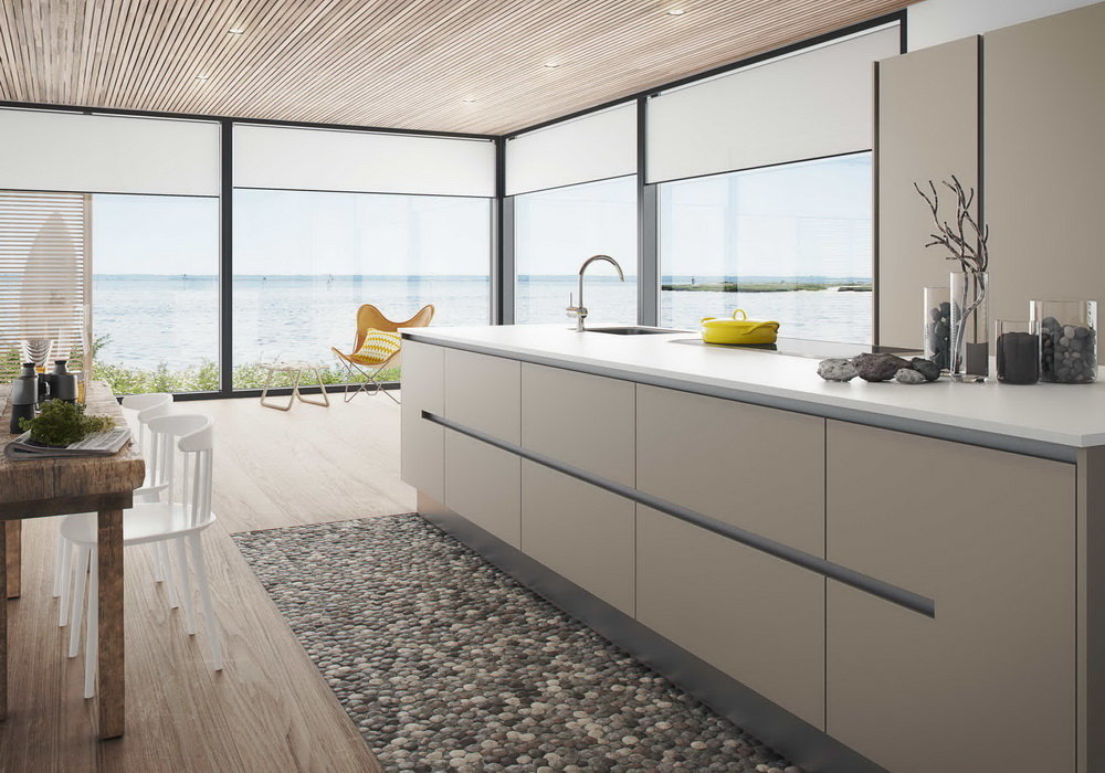 The "under the tile" kitchen laminate is an alternative to the standard tile. It imitates a pattern of marble, granite or terracotta tiles. The material has high moisture resistance and is suitable for use in the dining area. There are models with an antistatic effect, which makes cleaning the kitchen easier. This option is suitable for custom solutions in the interior.