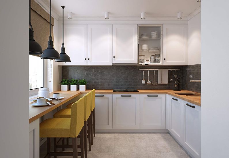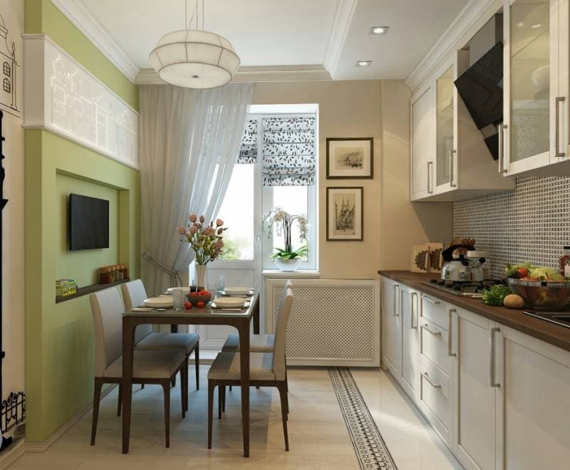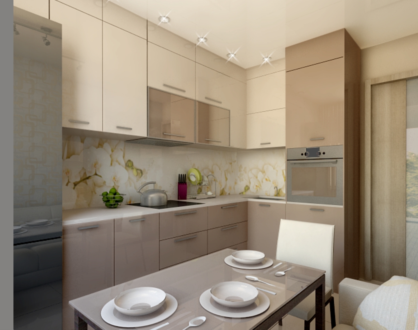 A room of 9 squares allows you to create a convenient and stylish kitchen design