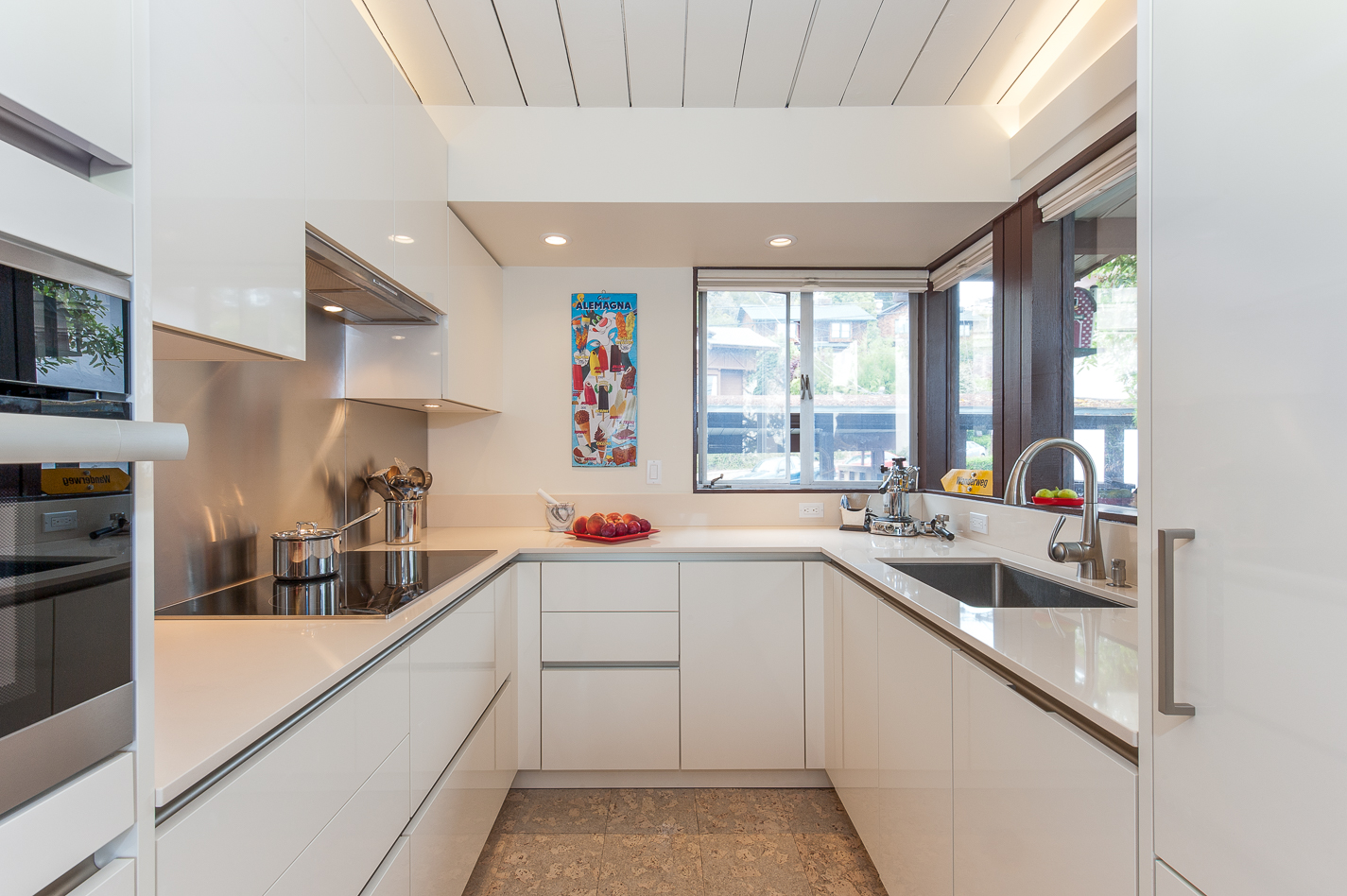 The ceiling space is finished with plasterboard sheets to enable the construction of a two-level ceiling. For the frames of the window opening, be sure to provide shoji false panels. This signature Japanese motif will perfectly decorate your small kitchen measuring 9 square meters, adding uniqueness.
