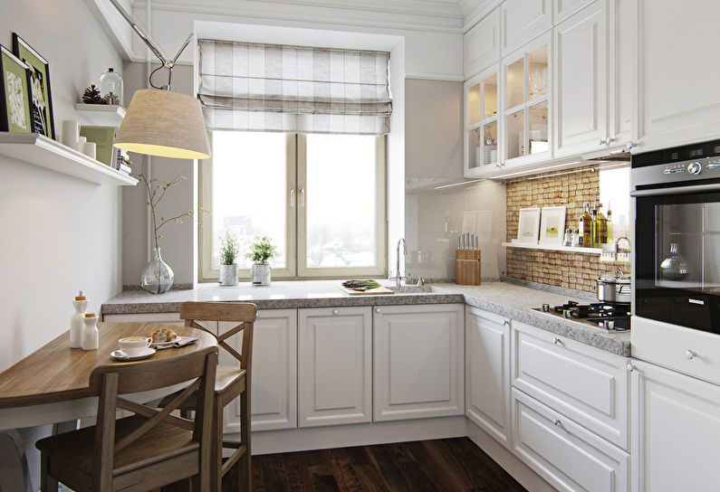 For a kitchen with windows on the shadow side of the house, it is better to choose light finishing materials