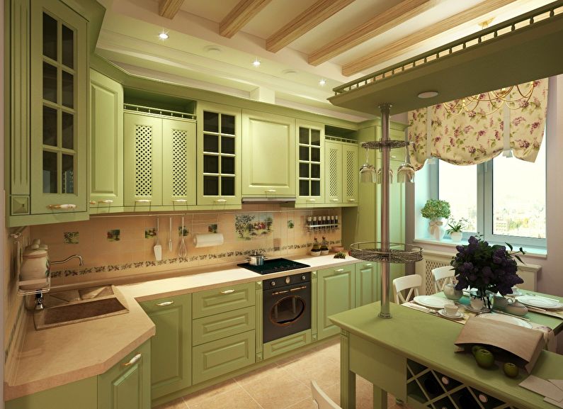 It is rare to see in the apartment a design of a kitchen set 9 sq m the photo of which is laid out below. Owners rarely use old Russian style. It is distinguished by warmth, comfort, ancient beauty.