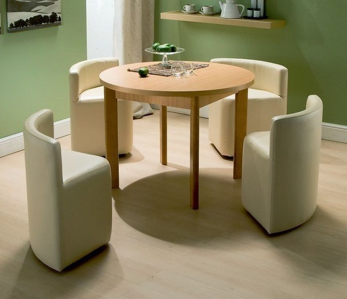 Round tables for the kitchen, in the interior of an apartment or house, look very neat.