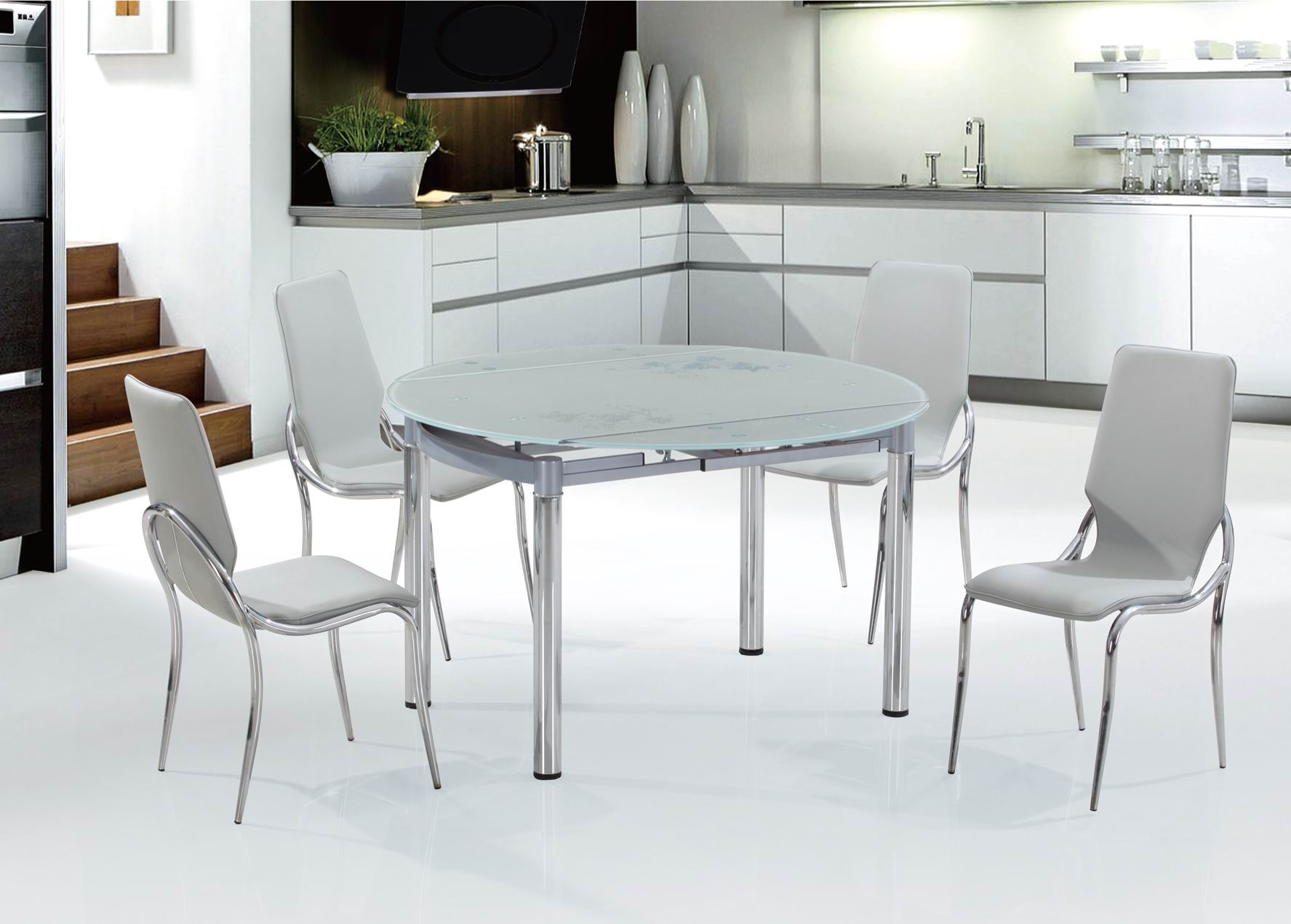 A sliding round table in the kitchen can be a way out of the situation when the size of the kitchen does not allow you to purchase a large product. The peculiarity of this design is that its diameter increases due to the hidden part of the countertop and double folding, which becomes visible only if the structure is expanded. This can be done by grasping the side of the product and folding it.