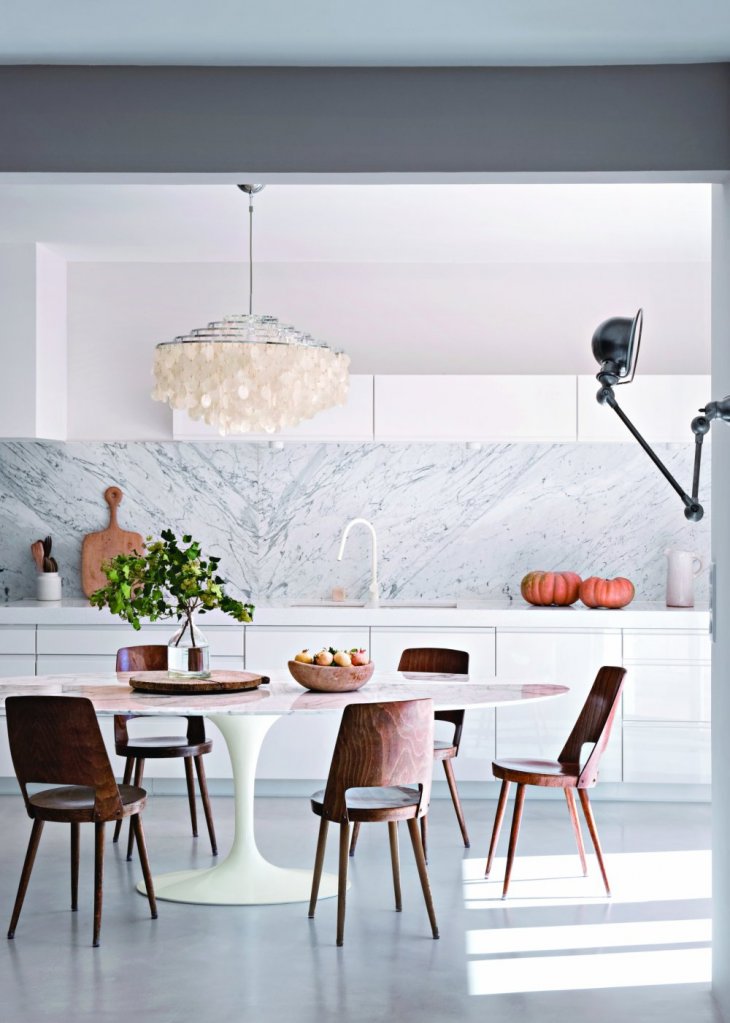 A table in the kitchen is an indispensable piece of furniture that you can’t do without. Many housewives are attracted to their sophistication by round models, but many have doubts about whether it will be possible to fit such a table organically into the kitchen space?