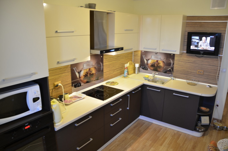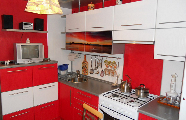 Tip: for the convenience of residents, if there is little space left, a television is often placed opposite the food intake area - it is usually hung on a wall away from sinks, hobs.