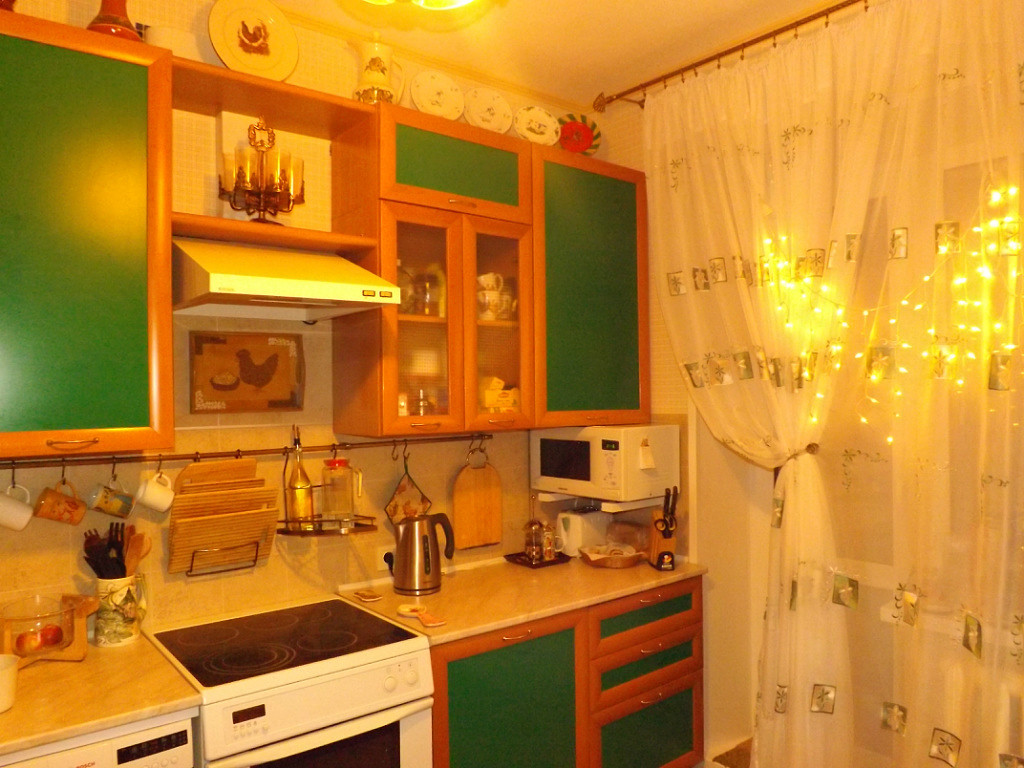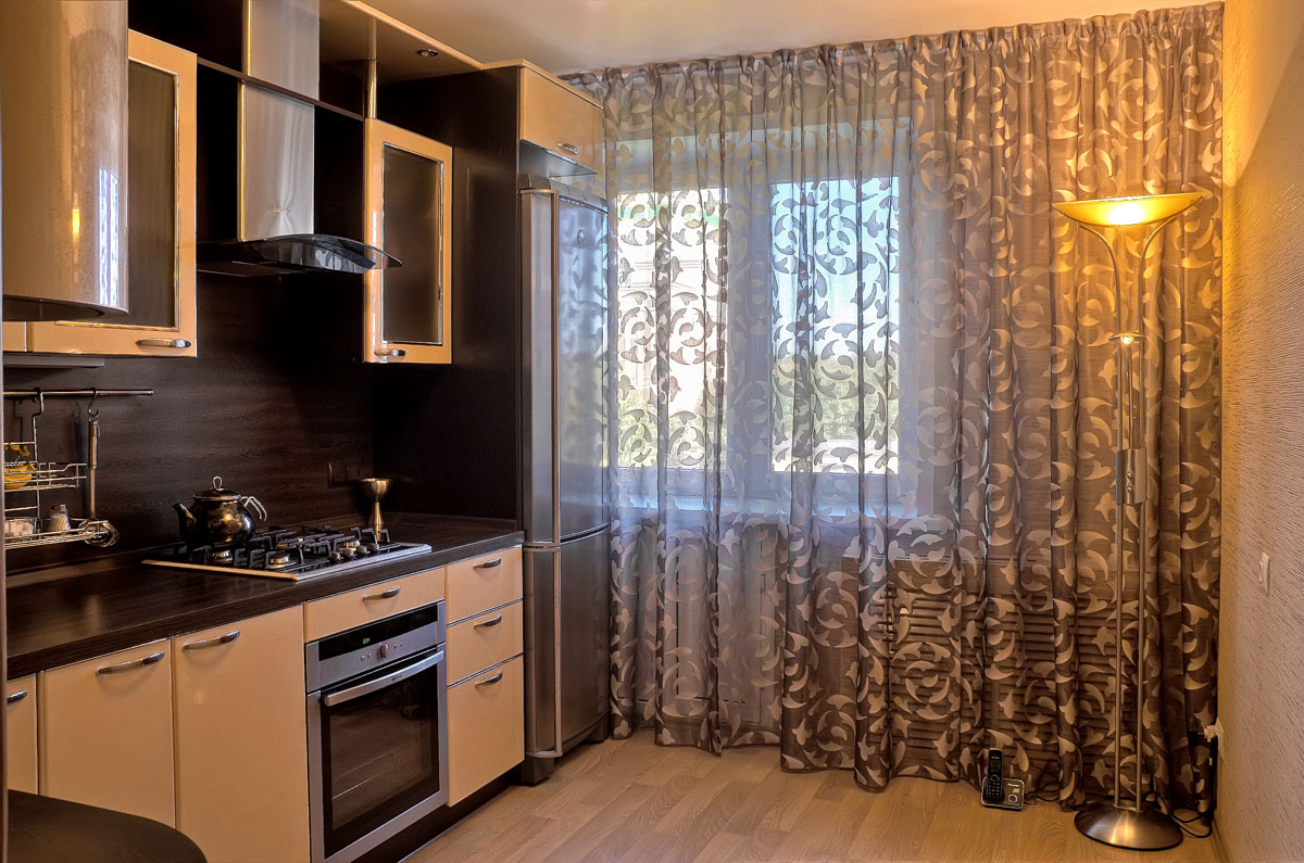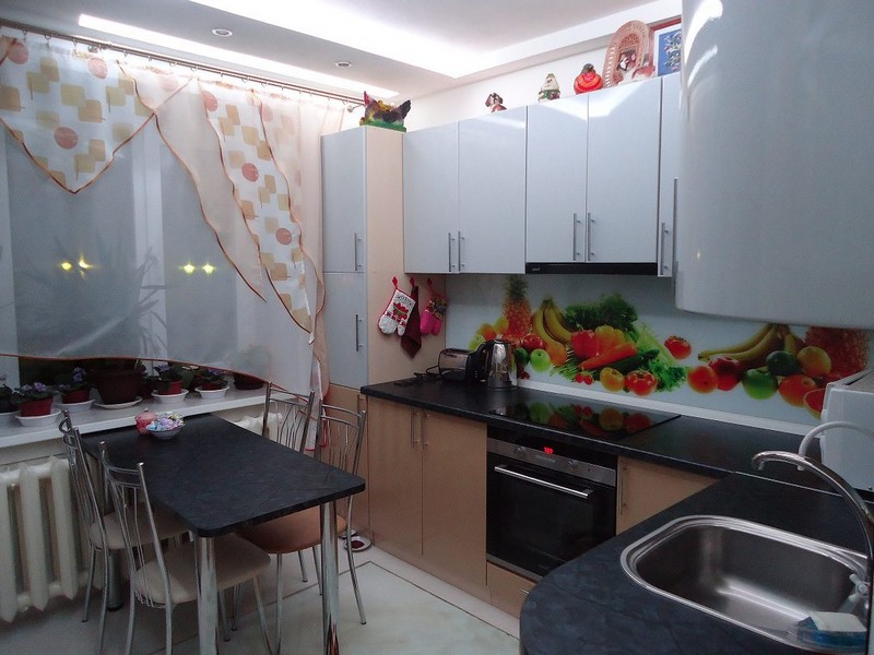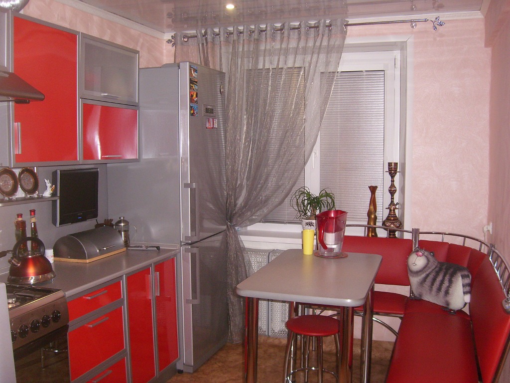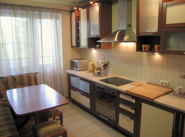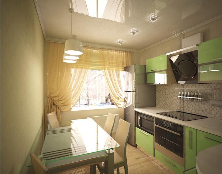 In the kitchen with an area of about nine square meters, not only all the necessary furniture, but also household appliances will be conveniently located. Such a standard for multi-storey panel houses, if desired, is redeveloped. This will require the help of a specialist who will do everything, taking into account the wishes of the customer, as well as coordinating the plan with local authorities.
