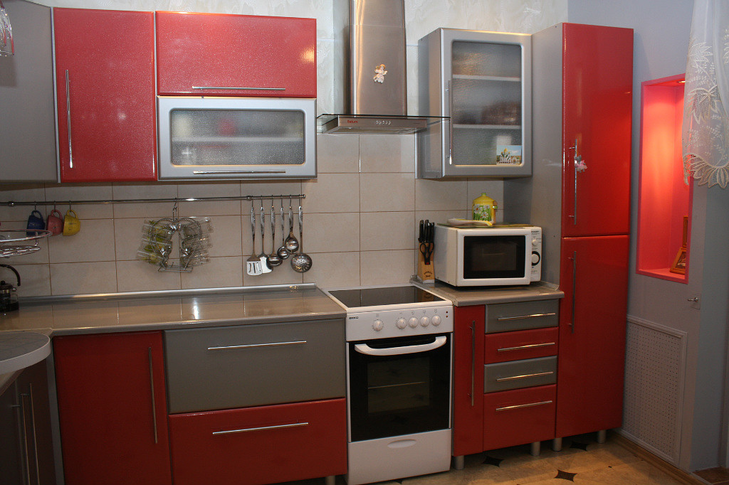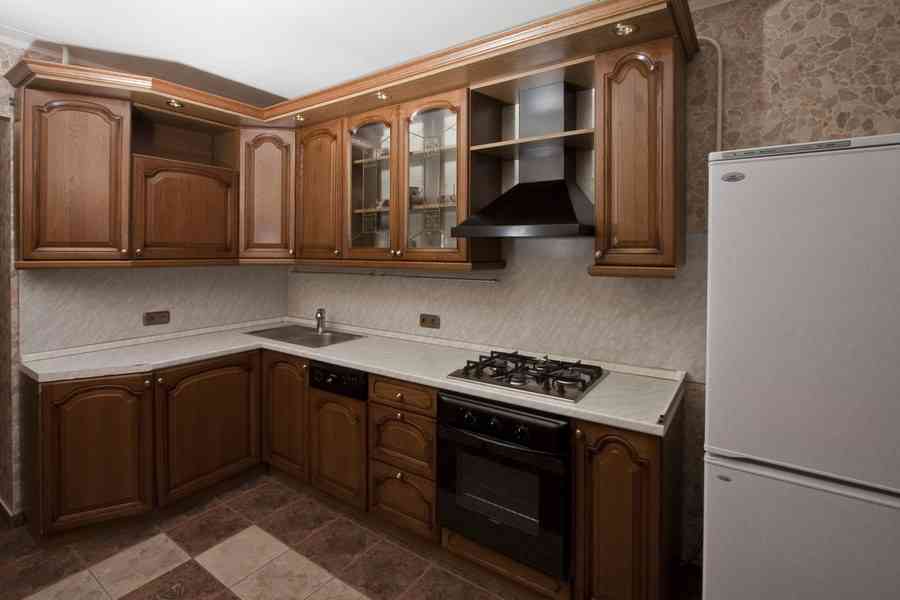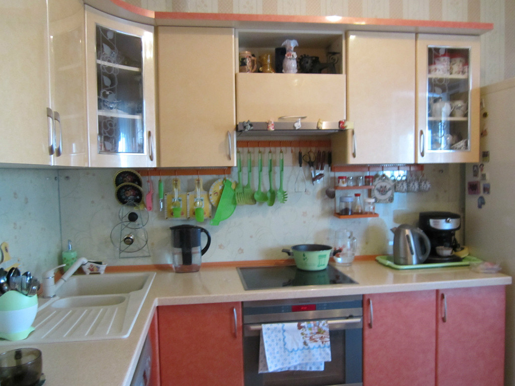 In the design projects of kitchens 9 square meters. There are many design options with photos, even when such a room has an “irregular” shape - L-shaped, elongated, etc. If the kitchen seems too cramped, it is permissible to combine it with any room - living room, hallway, balcony or just move one of walls, change the position of the door.