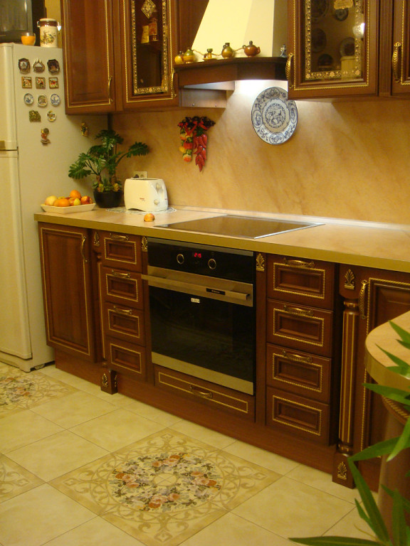 Where food is being prepared, all the items necessary for the hostess are placed close to each other - approximately at arm's length.A table for unloading purchased food products is usually located in the immediate vicinity of the refrigerator and sink, where some of them will be washed. A little further they put a work surface on which to cut, prepare for heat treatment, etc. Here, but not near the refrigerator is an electric, gas stove. The latter is not recommended to be placed close to the sink, as accidentally caught water can extinguish the burner, which can lead to a fire when re-ignited.