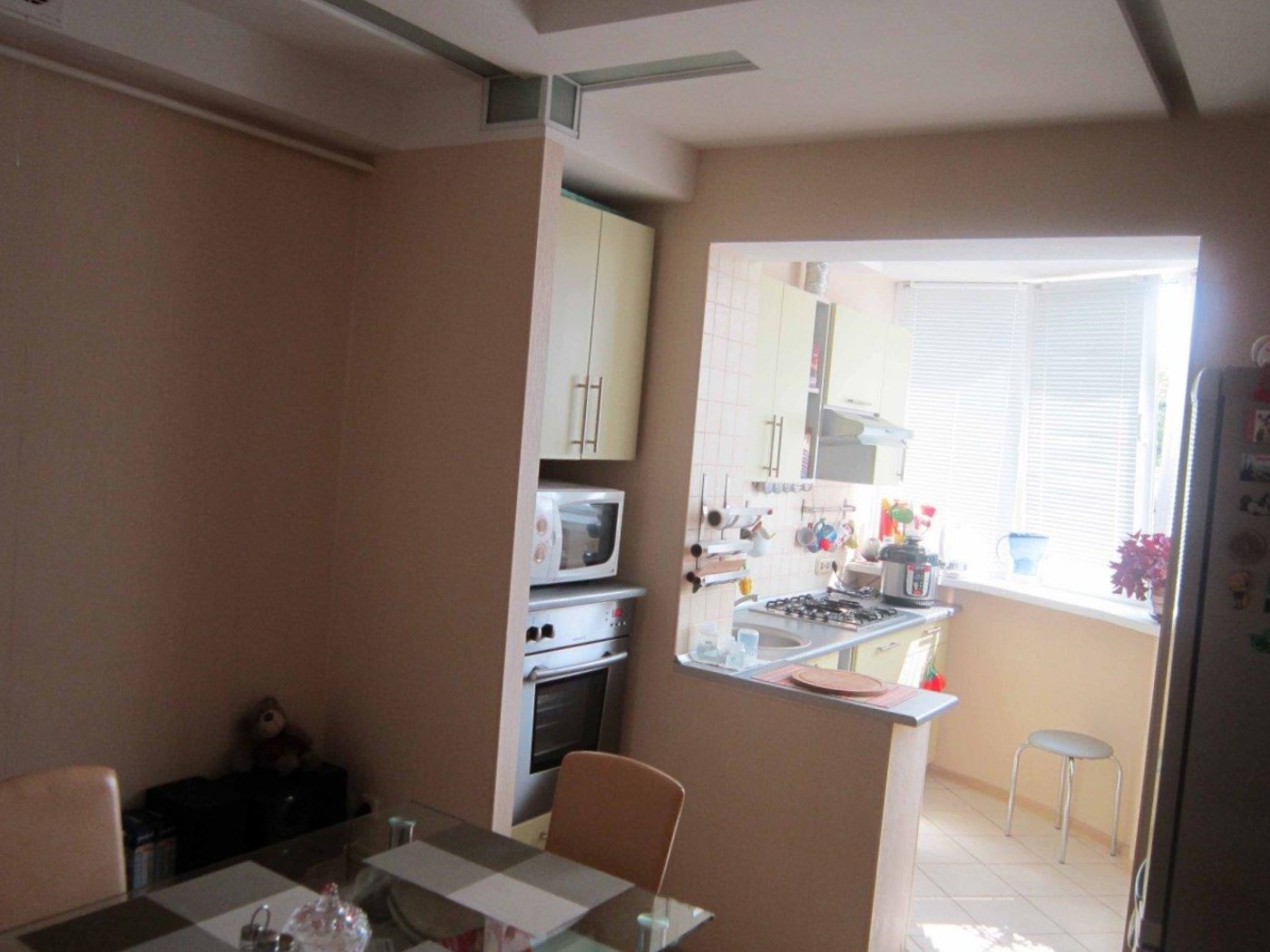 If there is a warmed balcony or loggia, the dining area is transferred there, it is only important to get dense curtains that can reliably hide diners from prying eyes. If the place was not enough, since the headset occupied everything, the option of eating food at the bar counter, which can be stationary, folding, island, is considered. Chairs under it are selected the appropriate height.