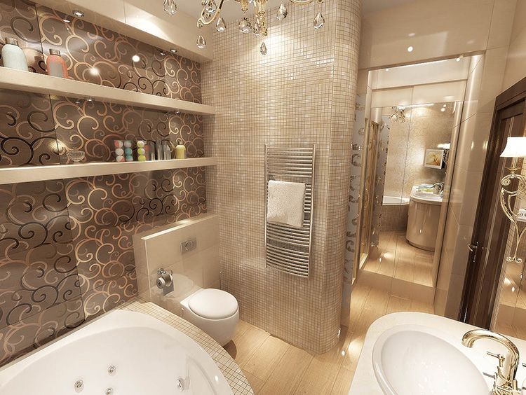 If you decide to create a real luxury design in the bathroom, then using only one tile in the finish will not work.