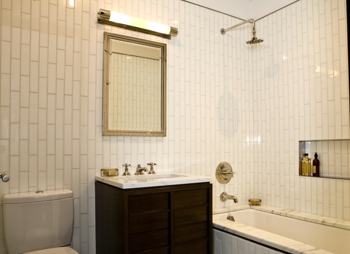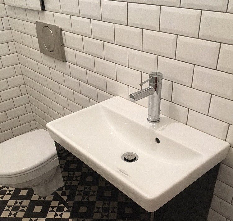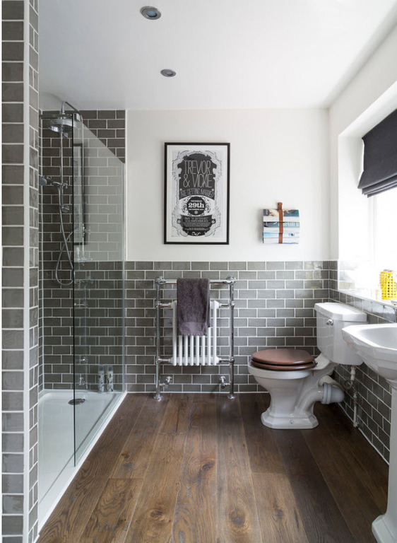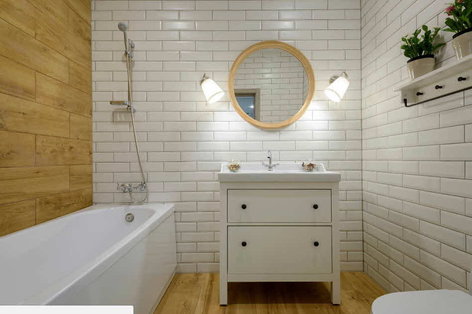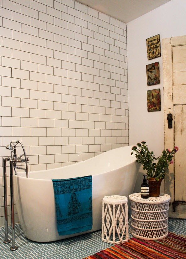 When lining the walls in a Scandinavian-style bathroom, you should stick to a “brick” print