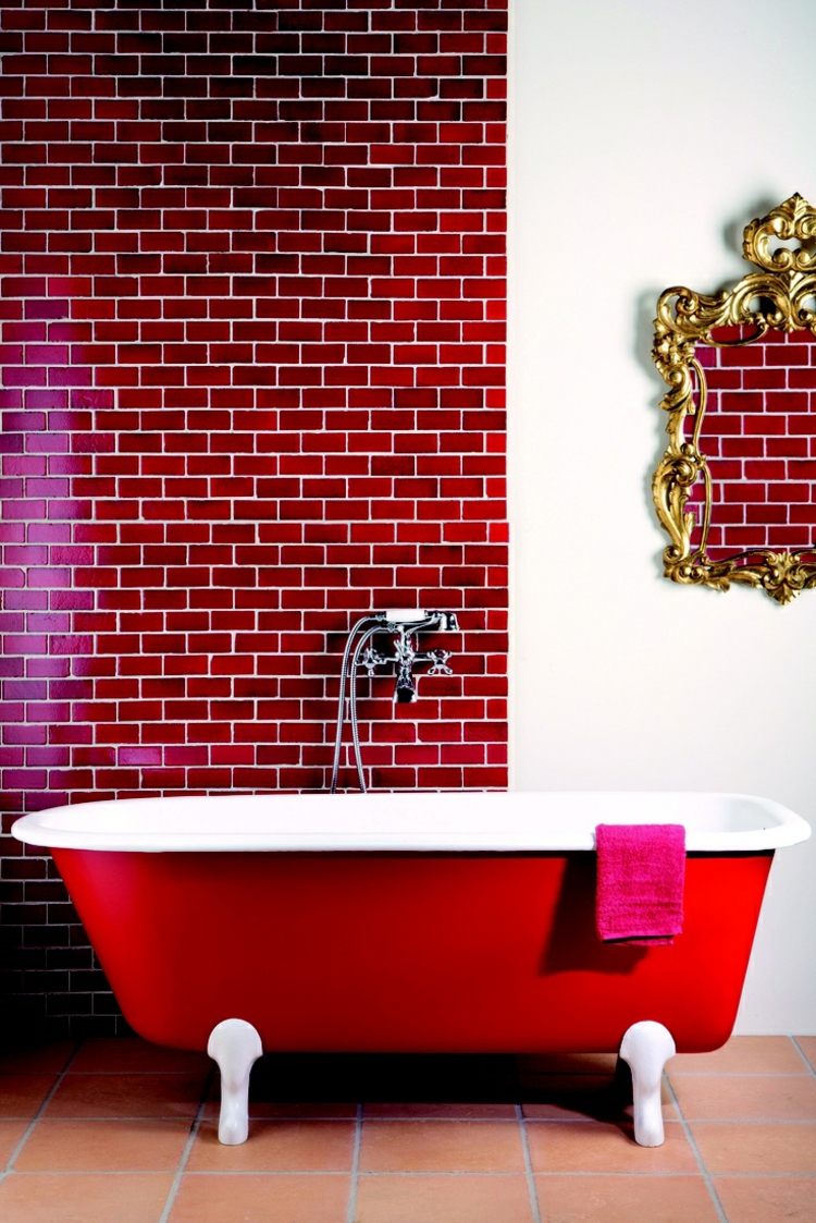 Bright red tiles will look bold in a modern style bathroom
