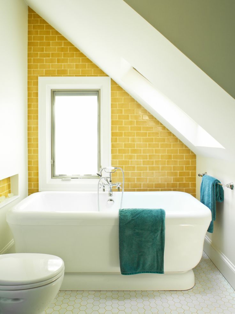 Yellow ceramics can be used to highlight an accent wall