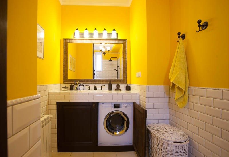 - Yellow. It is better to choose muted tones and combine with white, brown, and green.