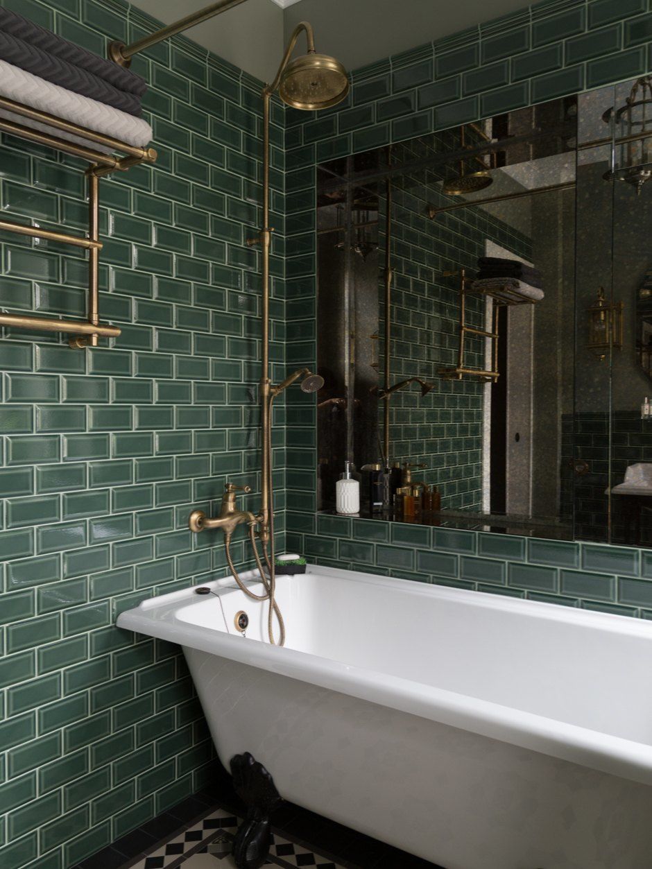 Green tiles, like other dark colors, can be used in rooms with good natural light.