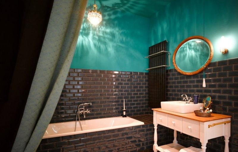 Blue tile is suitable for decorating a bathroom wall in Provence style