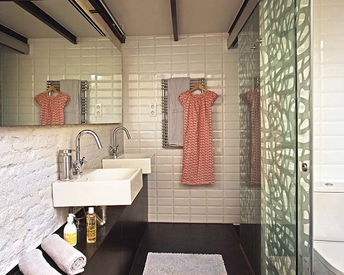 In a small bathroom, you can choose the diagonal styling of the “boar”