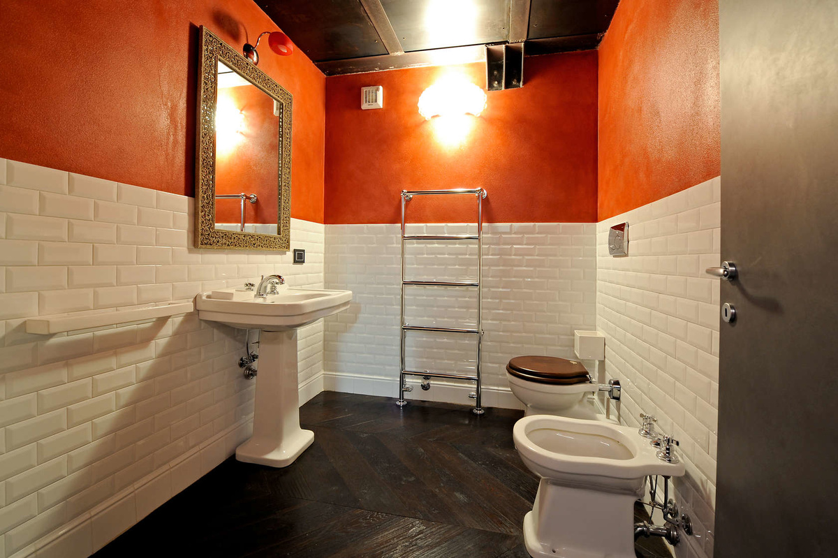 - Loft. Urbanism combined with industry. In such an interior, brickwork is also welcomed, the materials for which should be matte. To add roughness to the appearance, you can use a contrasting grout of red color or combine a boar with dark tiles.