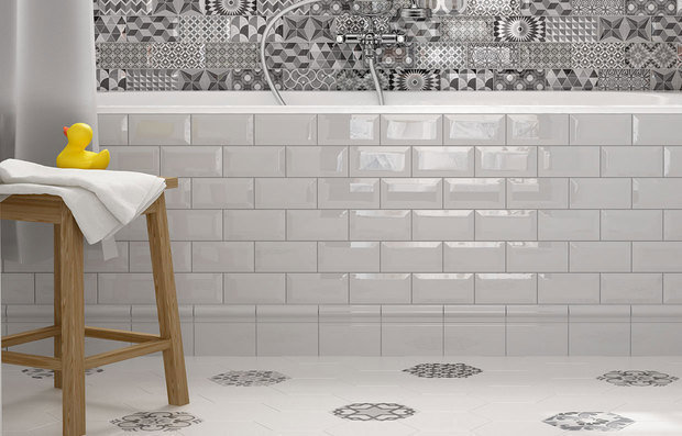 Glossy tiles visually enhance the bathroom