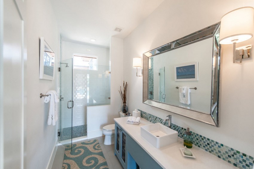 With a separate bathroom, the same rugs are also used, although they are located in different rooms.