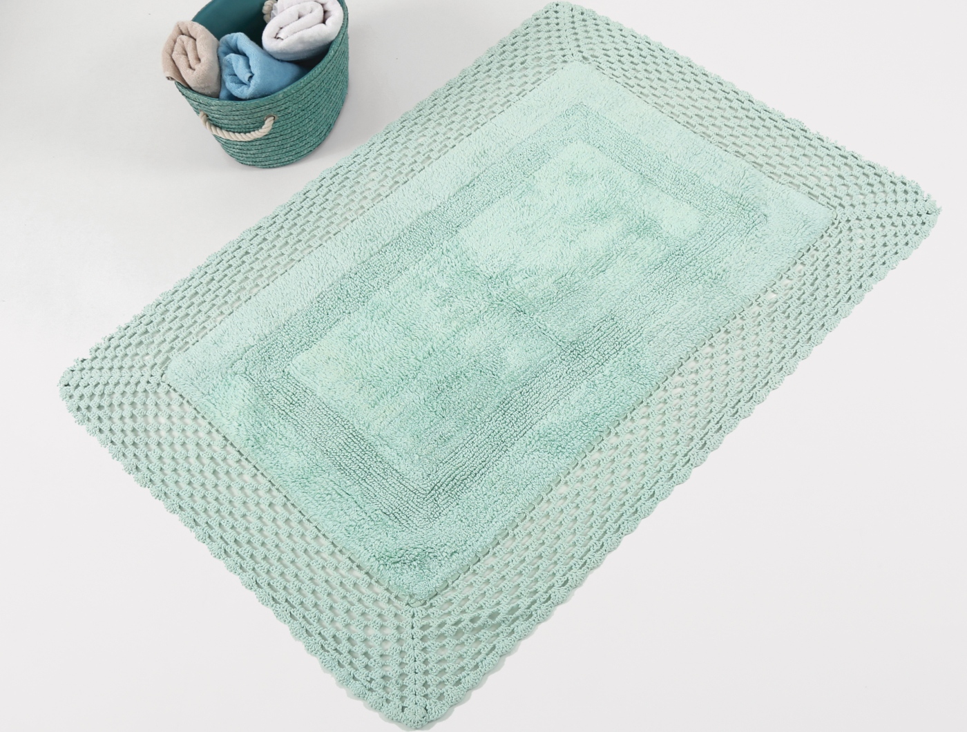 The bottom of the mat for a large bathroom can be made of silicone lining, or with the addition of PVC fibers in the main fabric, to give stability, prevent slipping and twisting.