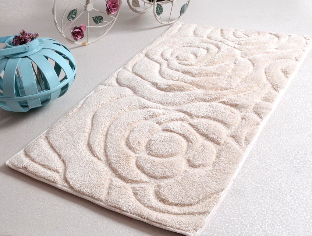 The top of the rugs for the bathroom helps to maintain balance, the lower part does not let moisture in, keeping the floor clean and dry. The presence of carpet products in the bathroom provides comfort, a cozy design.