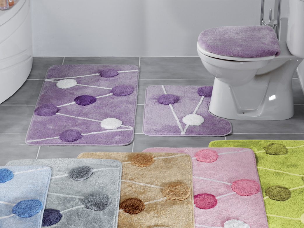 The bathroom and toilet have tile flooring. Contact with water leads not only to the formation of puddles on the floor, a traumatic situation can occur if a person slip. A set of beautiful carpets for the bathroom and toilet will protect the wet tiles, make the stay in the bathroom more comfortable.