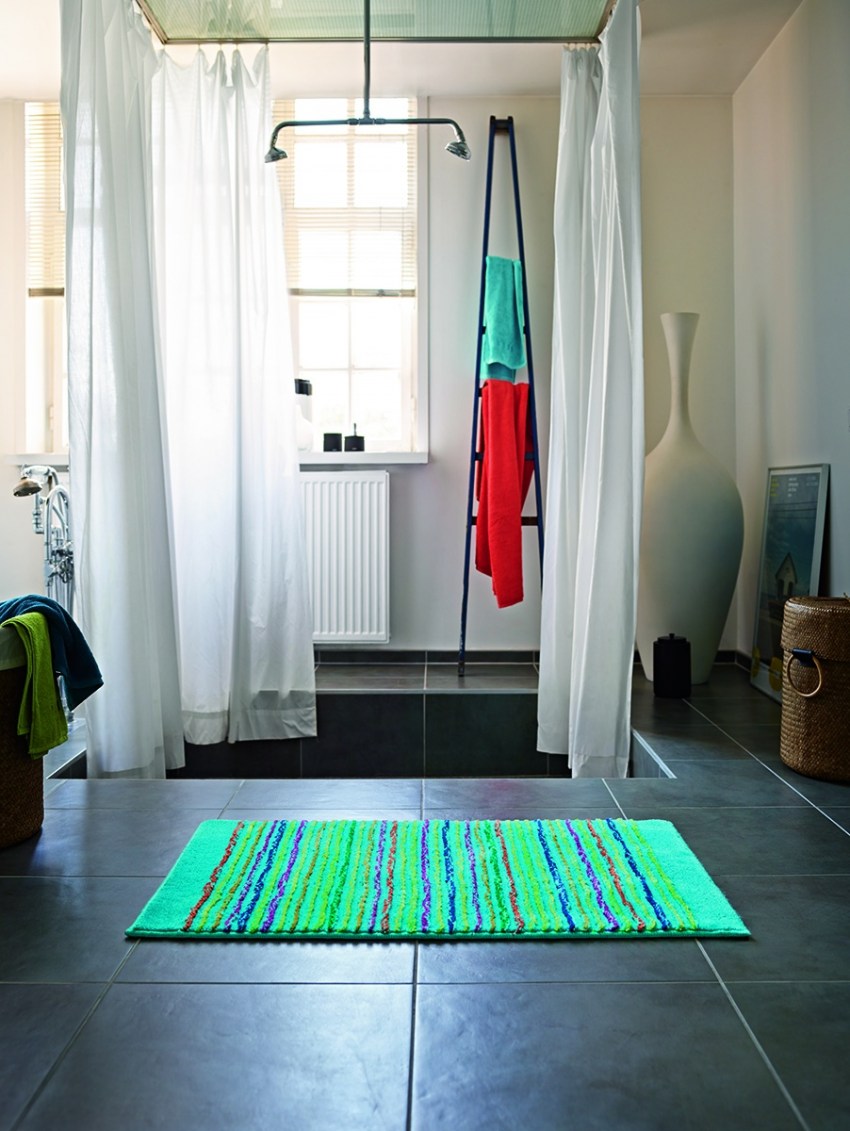 It is important to understand that a bath mat is an accessory that needs to be replaced over time. Each change of rugs opens a new vision of the interior of the restroom. No need to be afraid of experimenting with shapes and color.