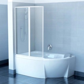 Note! In a specialized workshop you can order any modification of transparent barriers for the bathroom, including rounded flaps made of translucent plastic imitating glass.
