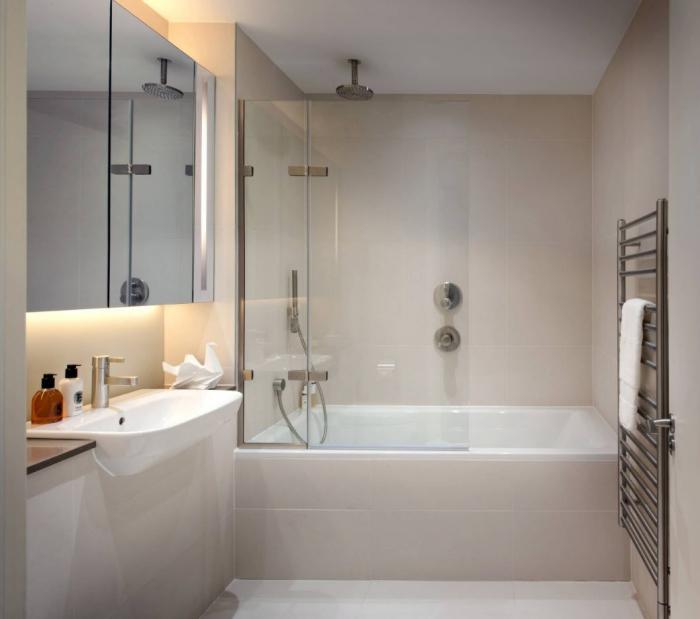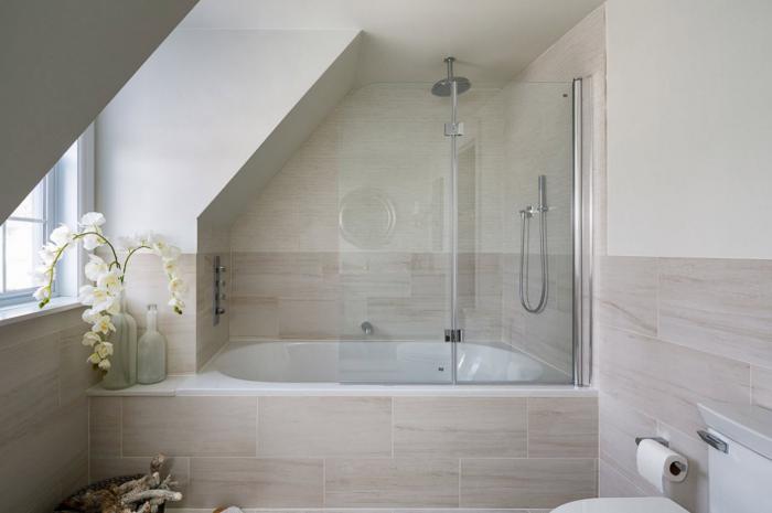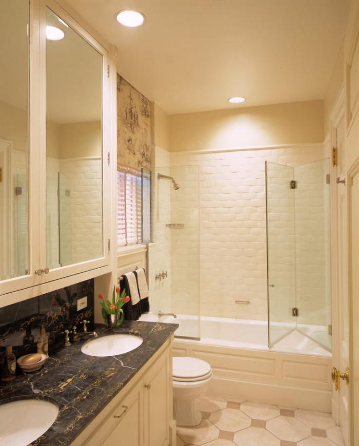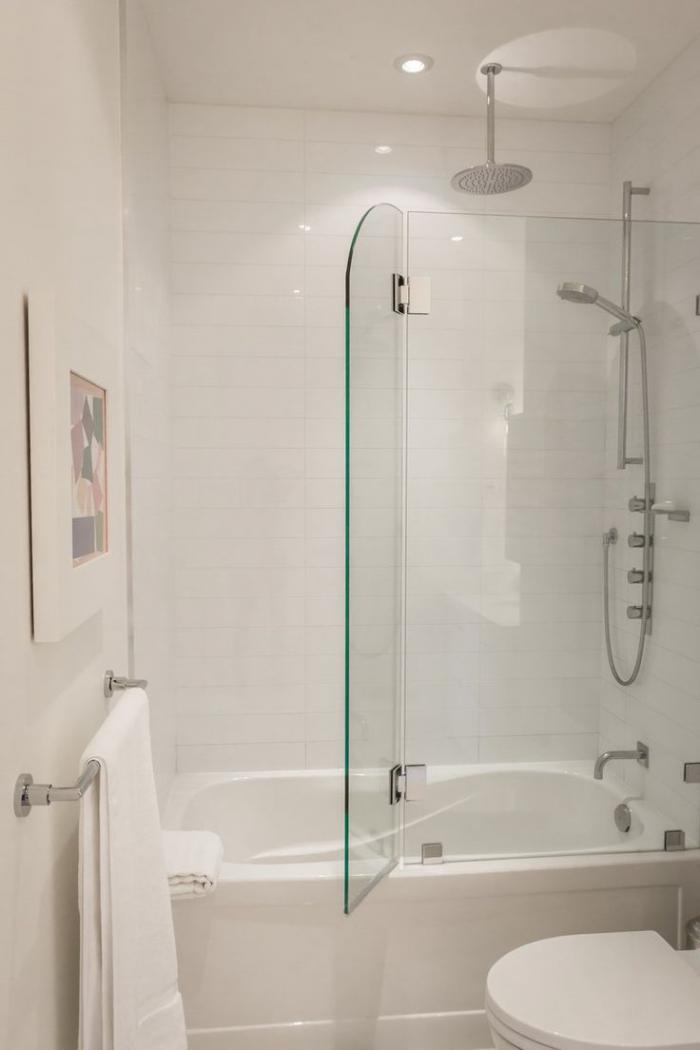 A glass partition makes it possible to combine the advantages of a shower and a bathroom, delaying the subsidence of moisture on all surfaces of the room. There is always the possibility of changing the type of construction and the overall design when changing the type of holders and accessories.