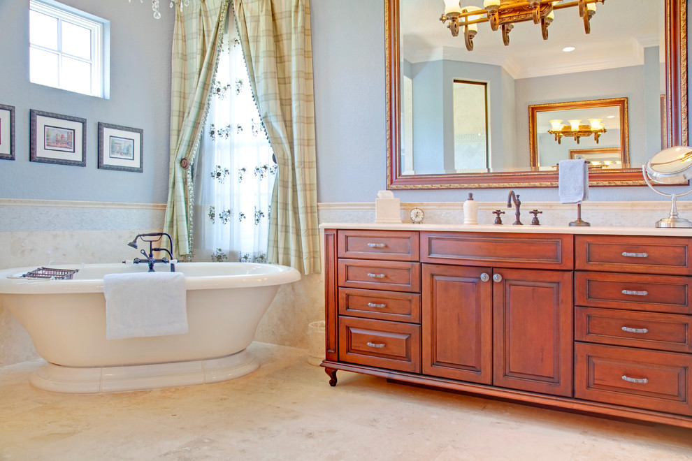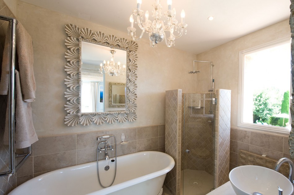 Provencal style bathroom interior with plenty of natural light