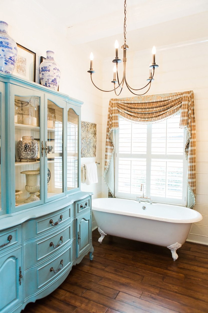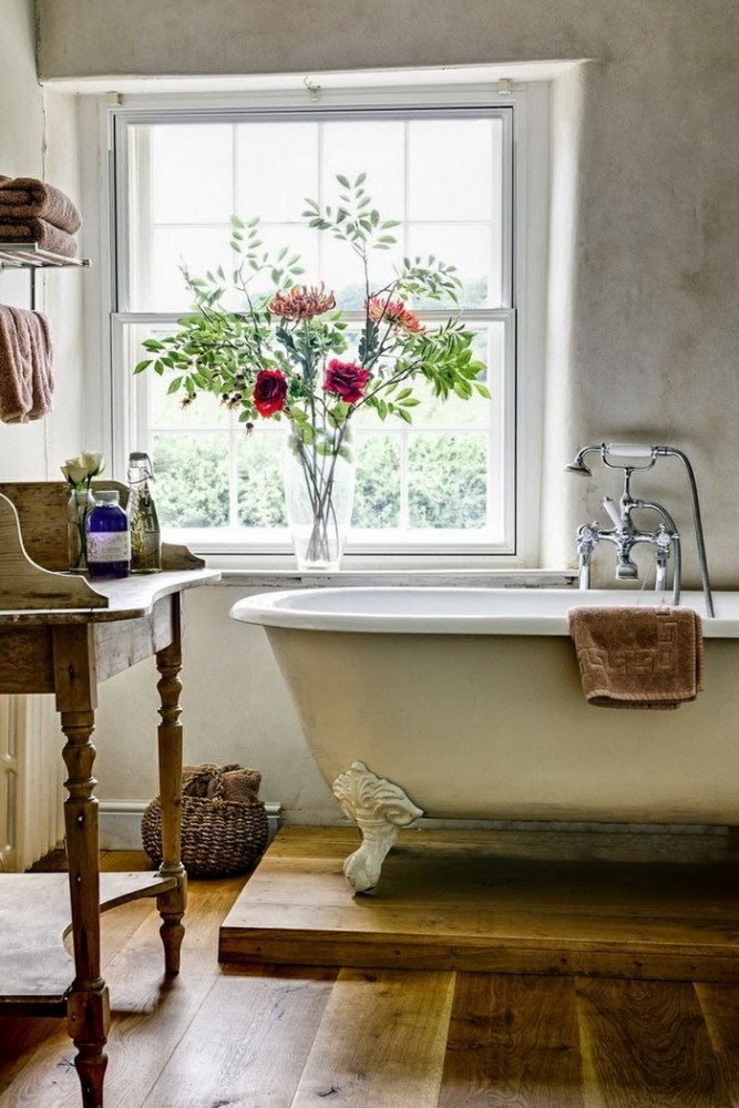 Massive cast-iron bathtub - a great choice for an interior in Provence style