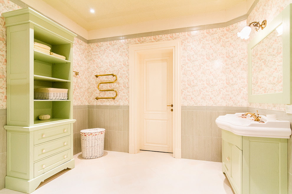 The cozy and warm interior of the bathroom in the popular Provence style is presented in the photo below.