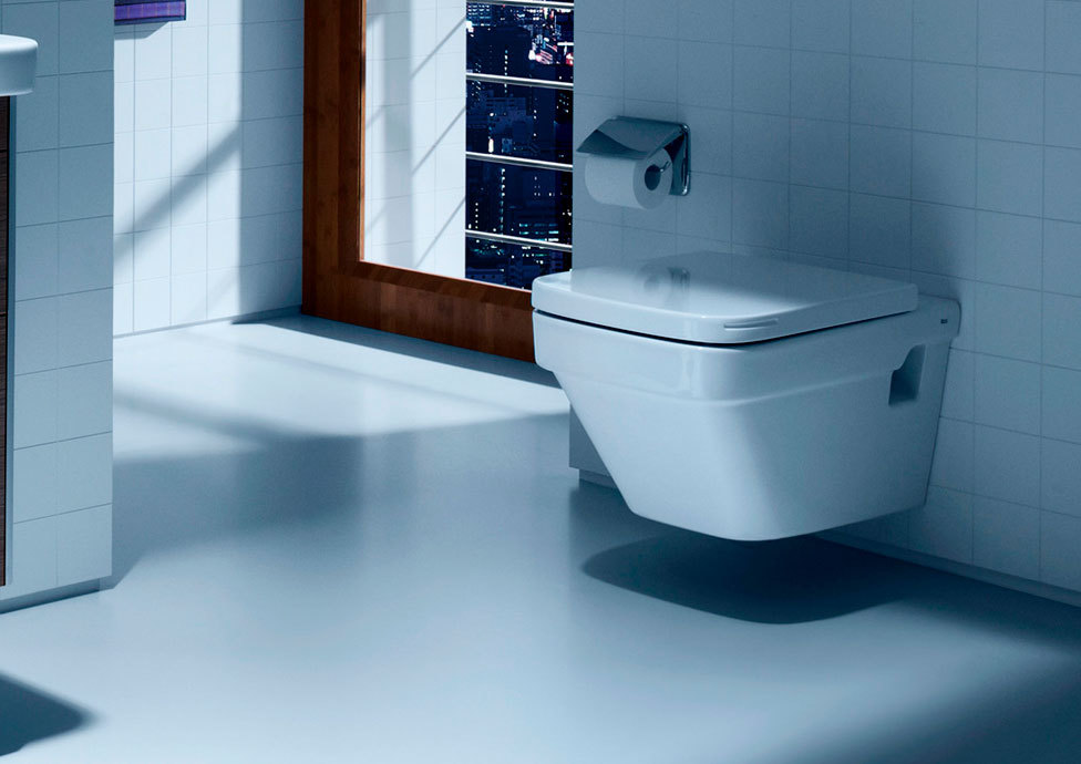 The suspended design of the toilet allows you to install water floors around the entire perimeter of the room.