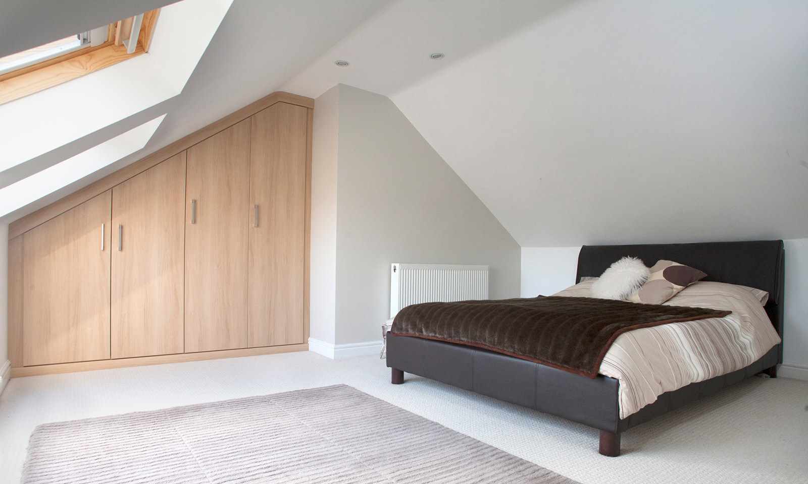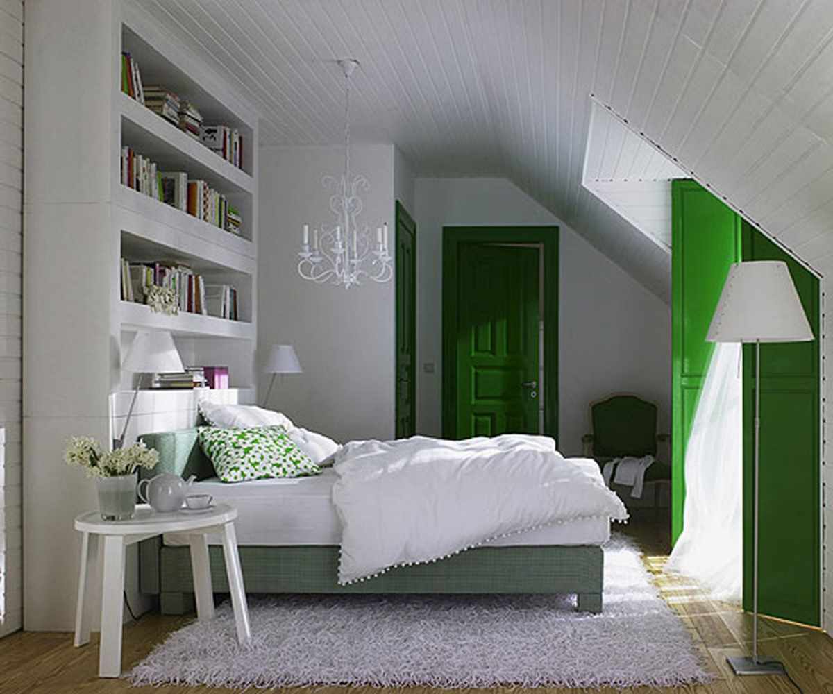 In the presence of a large attic there is no reason to stop at arranging only the bedchamber. The area should be used to the maximum. To do this, the space can be divided into several zones. For example, arrange a large dressing room, home library, office.
