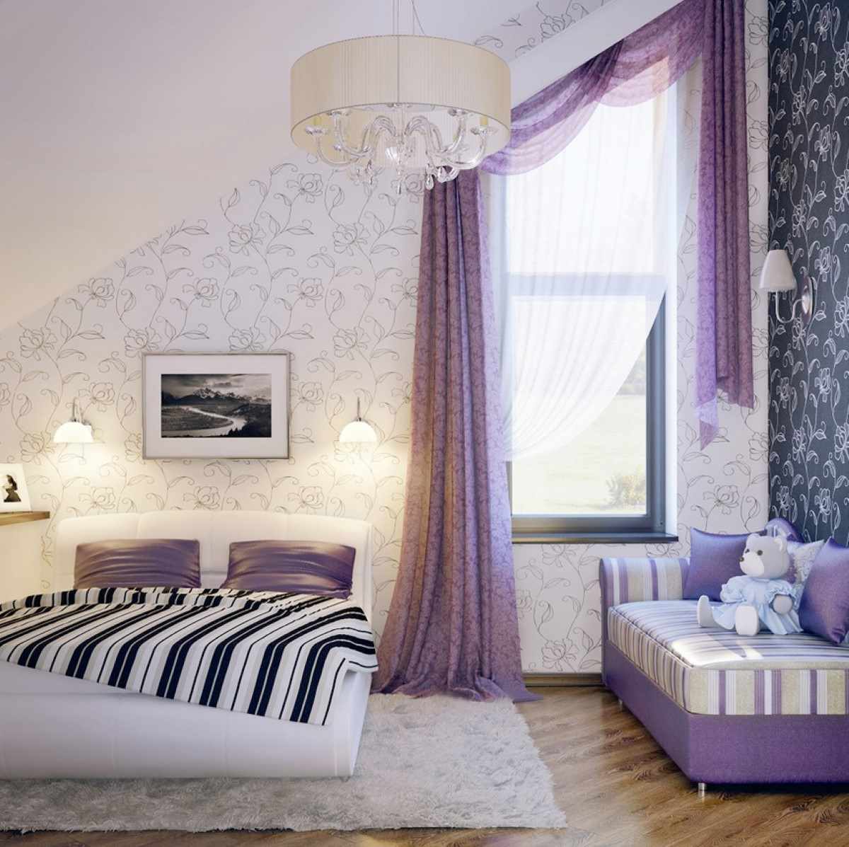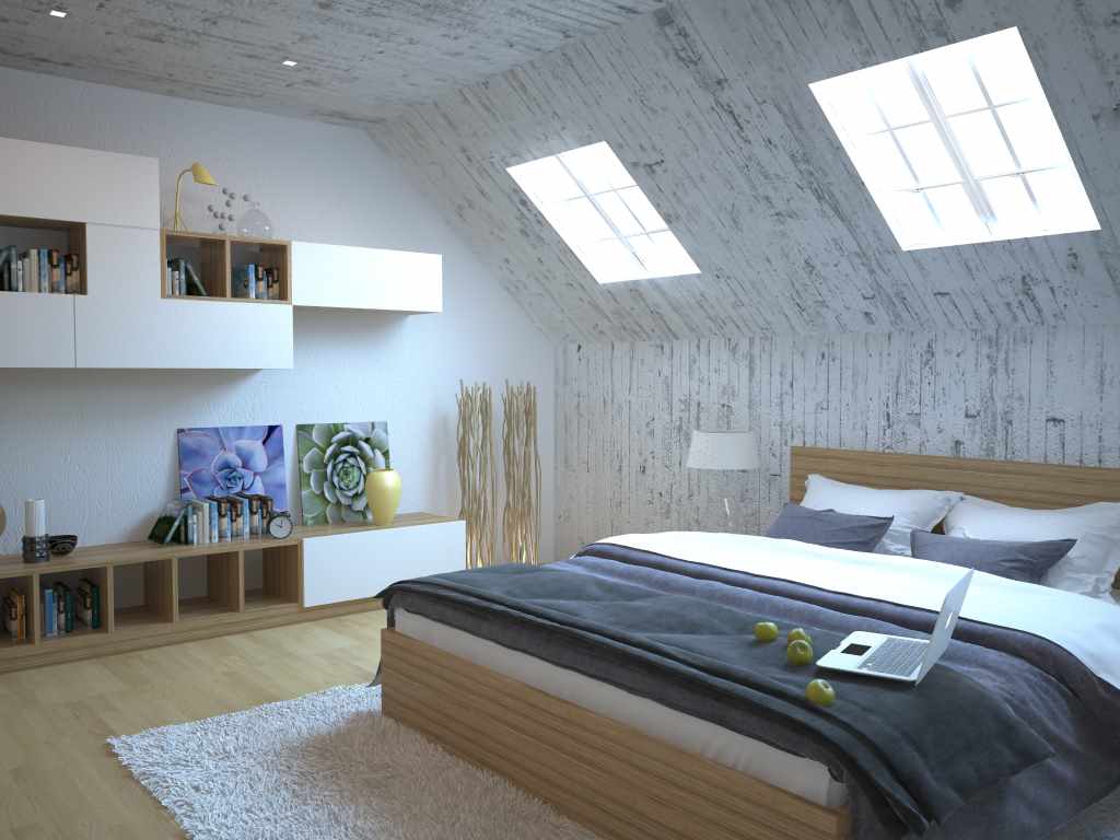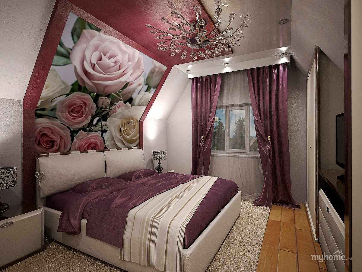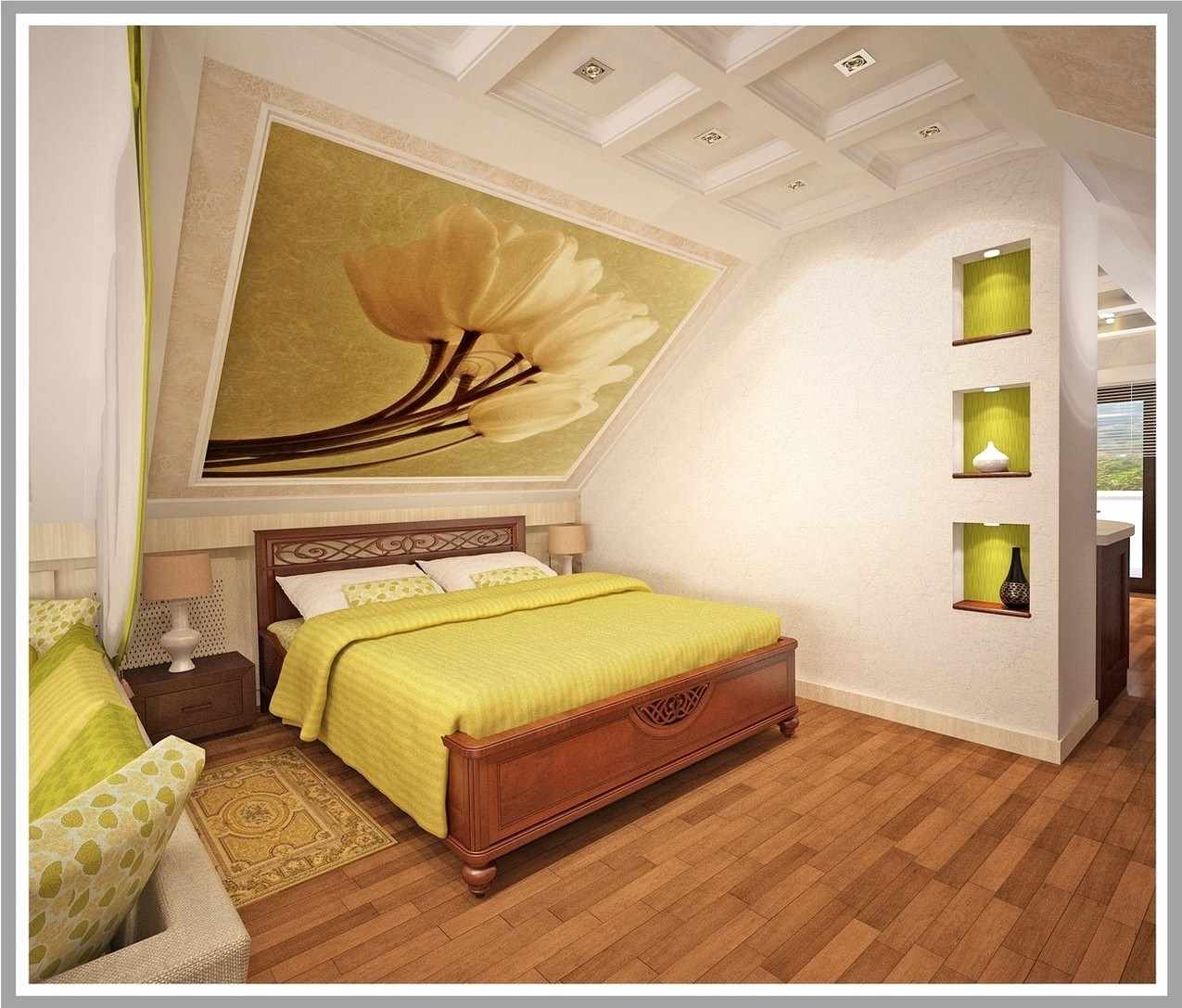 A spacious attic can be designed by mixing light, dark shades. The main thing to remember is that the bedroom should be comfortable, too saturated walls will prevent falling asleep, excite the nervous system.