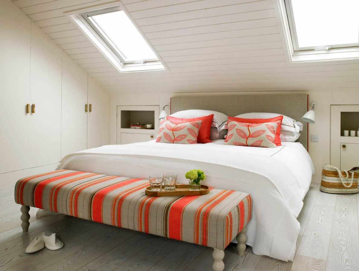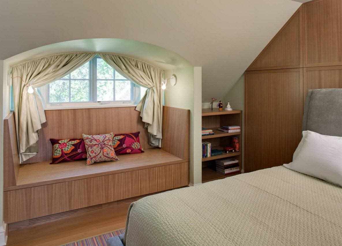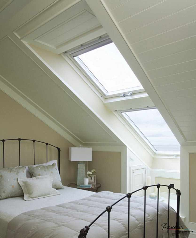 Another difference between the space under the roof is small windows. If there is a technical possibility, it is better to increase window openings. In the absence of such an opportunity, care should be taken to conduct electricity to provide artificial light. Also, small windows will leave a definite imprint on the future design of the attic bedroom.