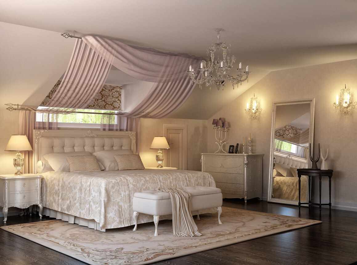 The style for the interior of the attic bedroom can be different: country, provence, modern, loft. However, most often it comes down to the classical direction. Classic style is an indicator of great taste. It is inherent in wealth, special grace, universality. The classic interior of the attic bedroom should have the following characteristics.