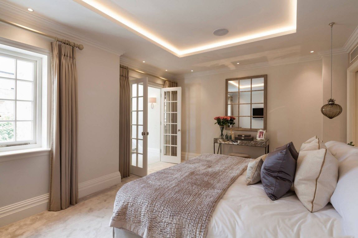 The embodiment of luxury and comfort is royal oversized. The emphasis in the interior is on the bed with a high headboard and lots of ruffles and pillows. The predominant material in the decoration of such an interior is textiles in all its manifestations: handmade carpets, drapery on the walls, multi-tiered curtains of complex design, bedspread and bed curtains. The high status of the owner of a luxurious bedroom will emphasize the prevailing white color in the decoration.