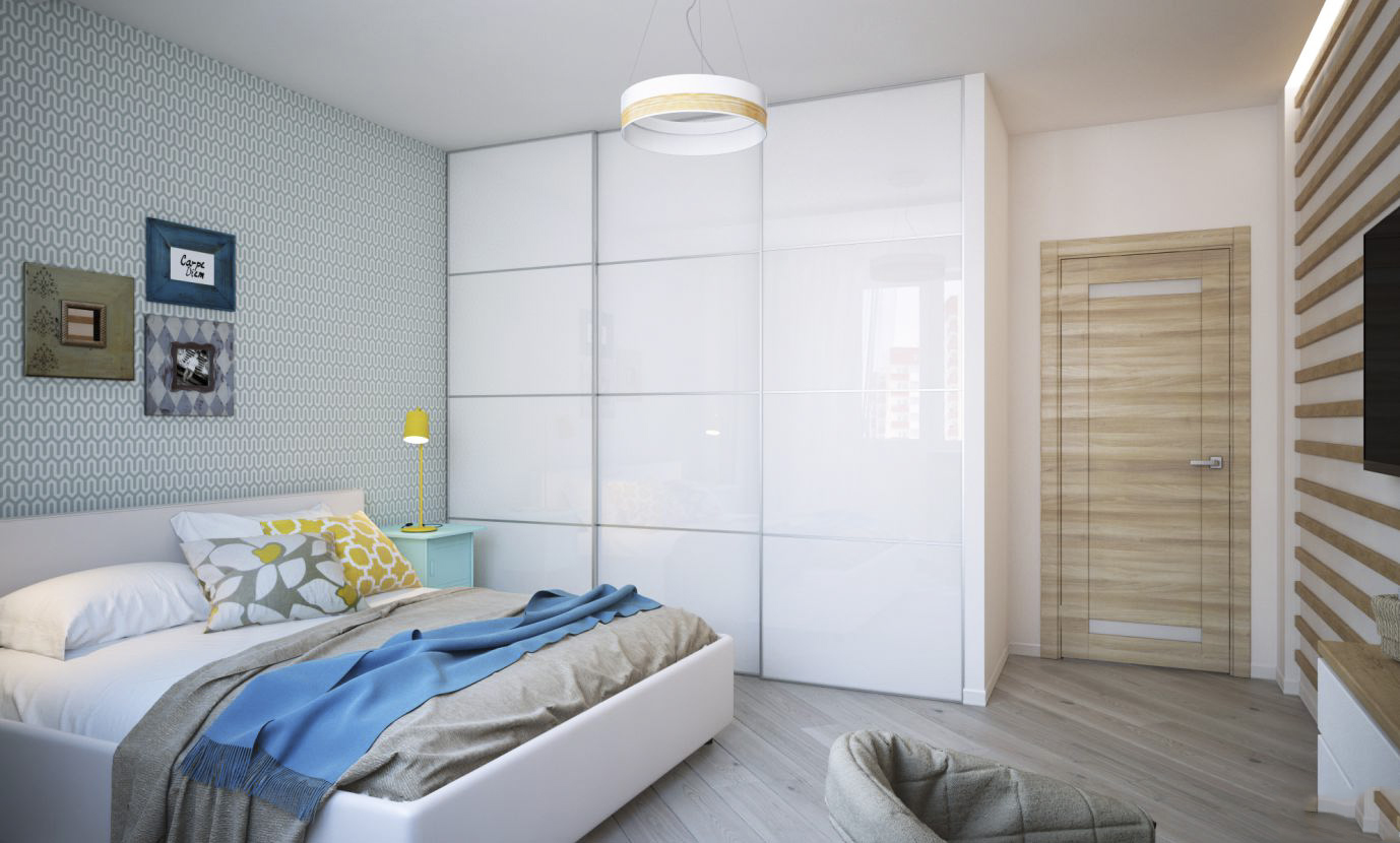 A suitable option for the bedroom is a wardrobe. Sliding doors do not interfere with moving around the room, and mirrors built into the doors visually expand the room. In addition, you do not have to puzzle over the question: "Where to place a mirror?"
