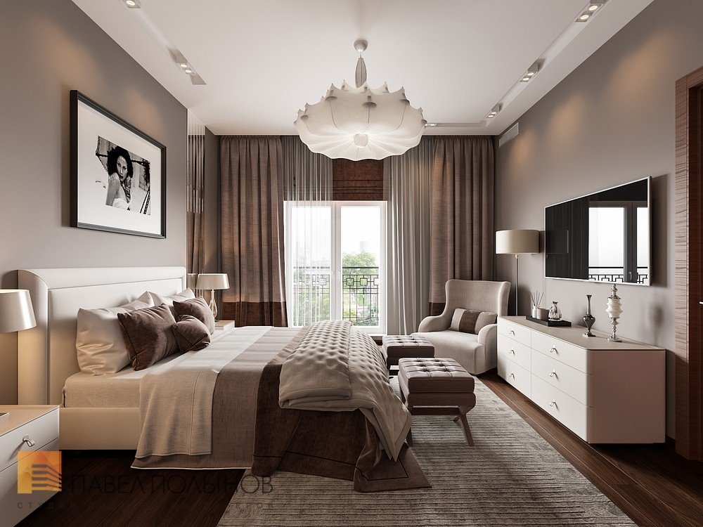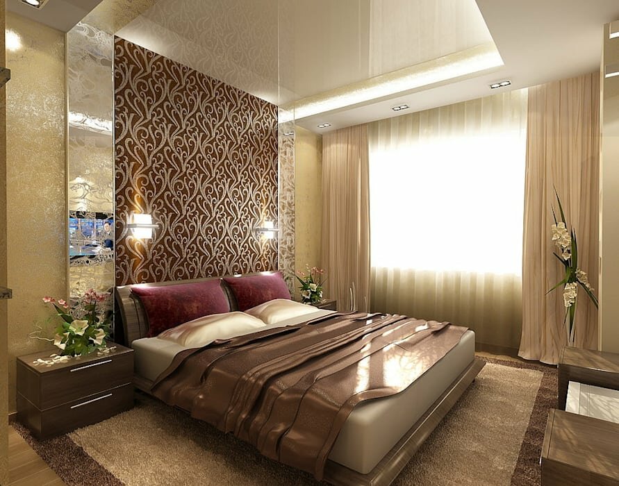 The bedroom of 25 sq m is a fairly spacious room suitable for the implementation of any design ideas.