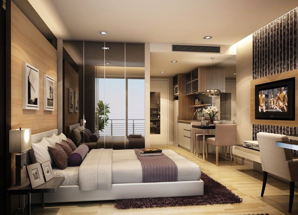 The interior of a single room does not do without stylish trifles that give it more comfort.
