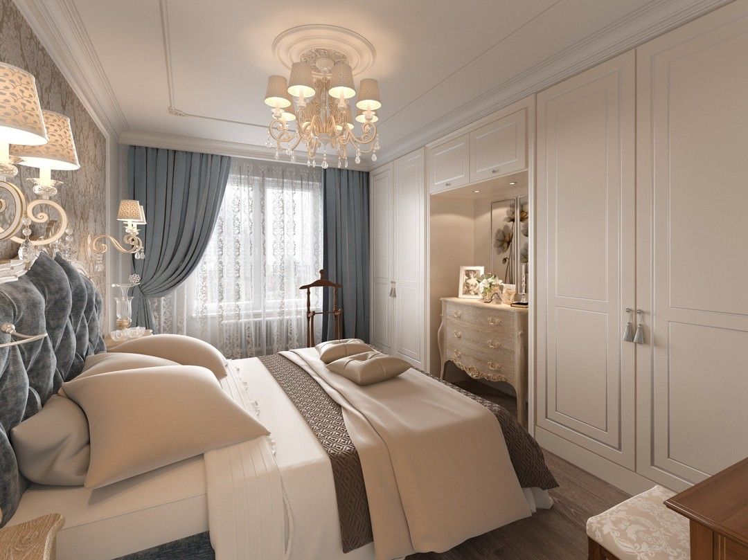 To realize the classic design in the bedroom 5 by 5, and to place all this decoration without piles is not easy. Therefore, a detailed design of the future interior is required.
