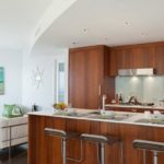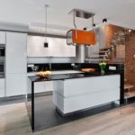 Si eres el dueño de una habitación espaciosa, con una gran cuadratura y techos altos, entonces eres increíblemente afortunado. Dicha cocina no solo es conveniente para operar, sino que también se puede realizar en casi cualquier estilo.