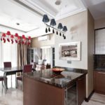 Además, la cocina es un lugar para recibir invitados, y es muy importante que sea acogedora y agradable a la vista. Las lámparas presentarán un punto culminante único en el diseño. El diseño perfectamente adaptado puede actuar fácilmente como una salida, gracias a lo cual un diseño tranquilo obtendrá un acento brillante. O encajar orgánicamente en el interior y darle integridad.
