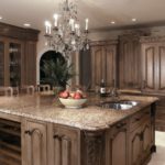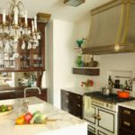 Tales candelabros para la cocina son de lujo, estatus e increíble belleza. Encaja perfectamente no solo en el clásico, sino también en el estilo bohemio de la cocina. Dichos diseños se distinguen por muchos elementos colgantes, una cierta pretensión combinada con elegancia.